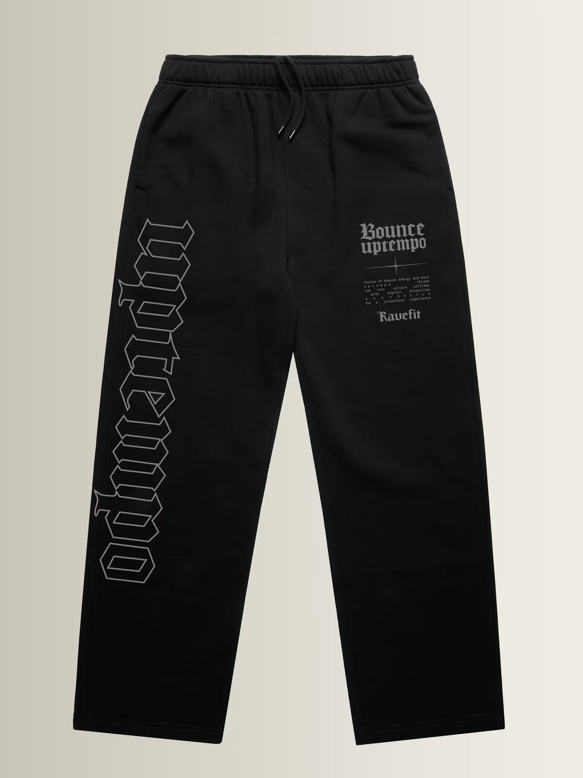 De RaveFit® Bounce Uptempo joggers zijn gemaakt voor de diehard liefhebbers van bounce uptempo hardcore. Minimaal 200 BPM. Geen zachte kicks, alleen knallen. Deze joggers zijn voor wie bounce’t, hakt en alles geeft op de dansvloer, met kicks die door je borst beuken en geen ruimte laten voor rust.
